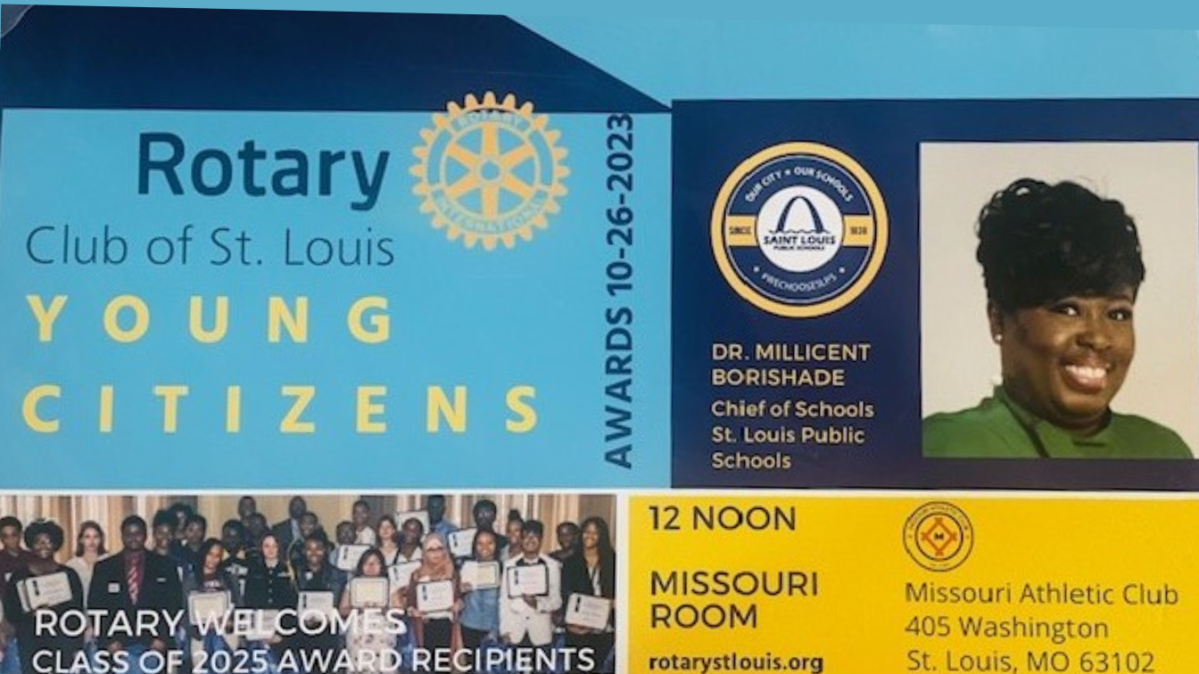 In October 2023, Dr. Borishade was invited to speak at the St. Louis Rotary Club's Young Citizens Awards ceremony, one of the city's most established civic recognition events. Her biography and educational philosophy were featured as part of the program, reflecting her standing as a senior education leader committed to the civic life of the communities she serves. The invitation came during her tenure as Chief of Schools at Saint Louis Public Schools, recognizing her contributions to the district and the broader St. Louis community.